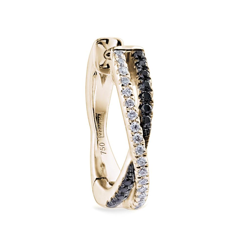 Cross-Over Black & White Diamond Hoop Earrings 18ct Gold