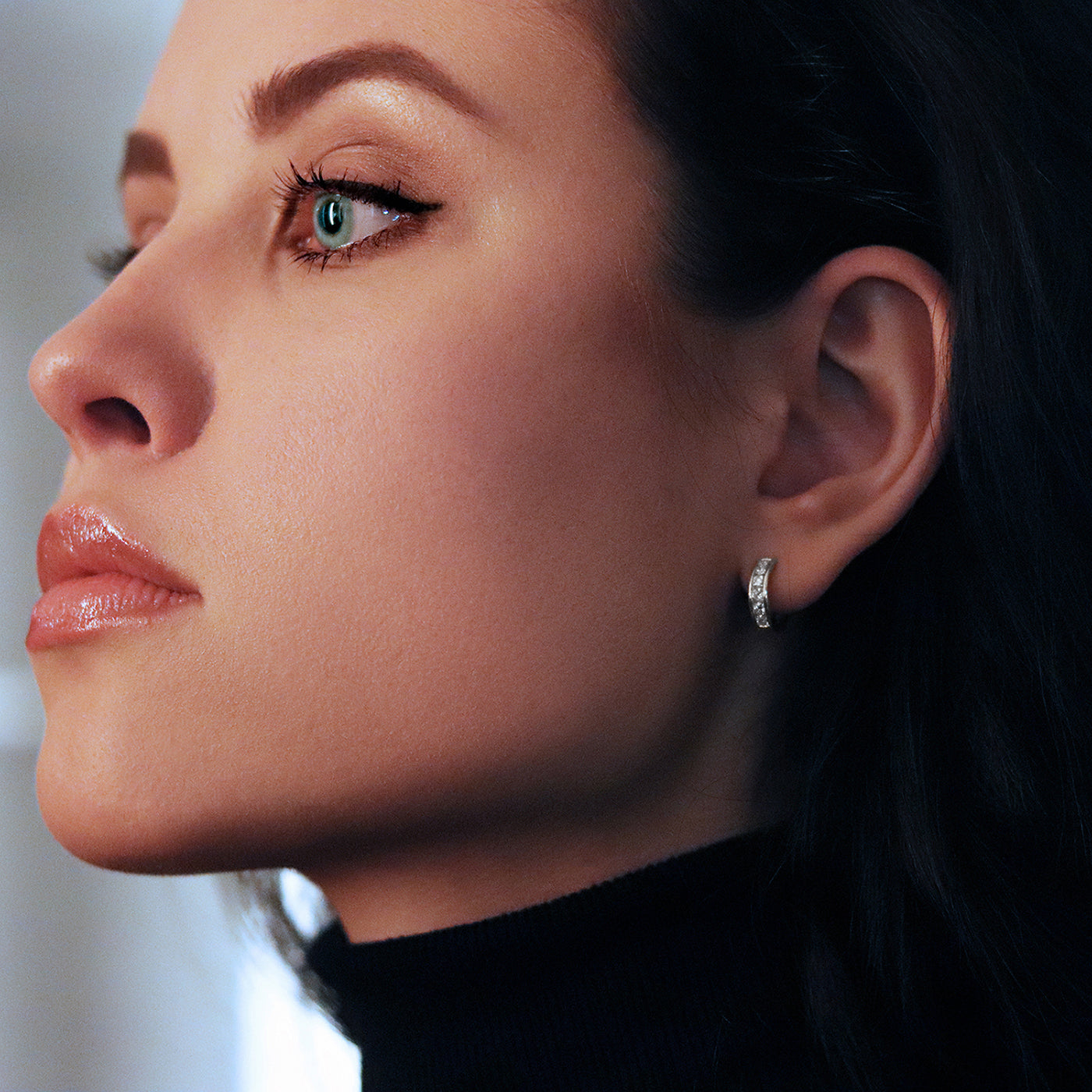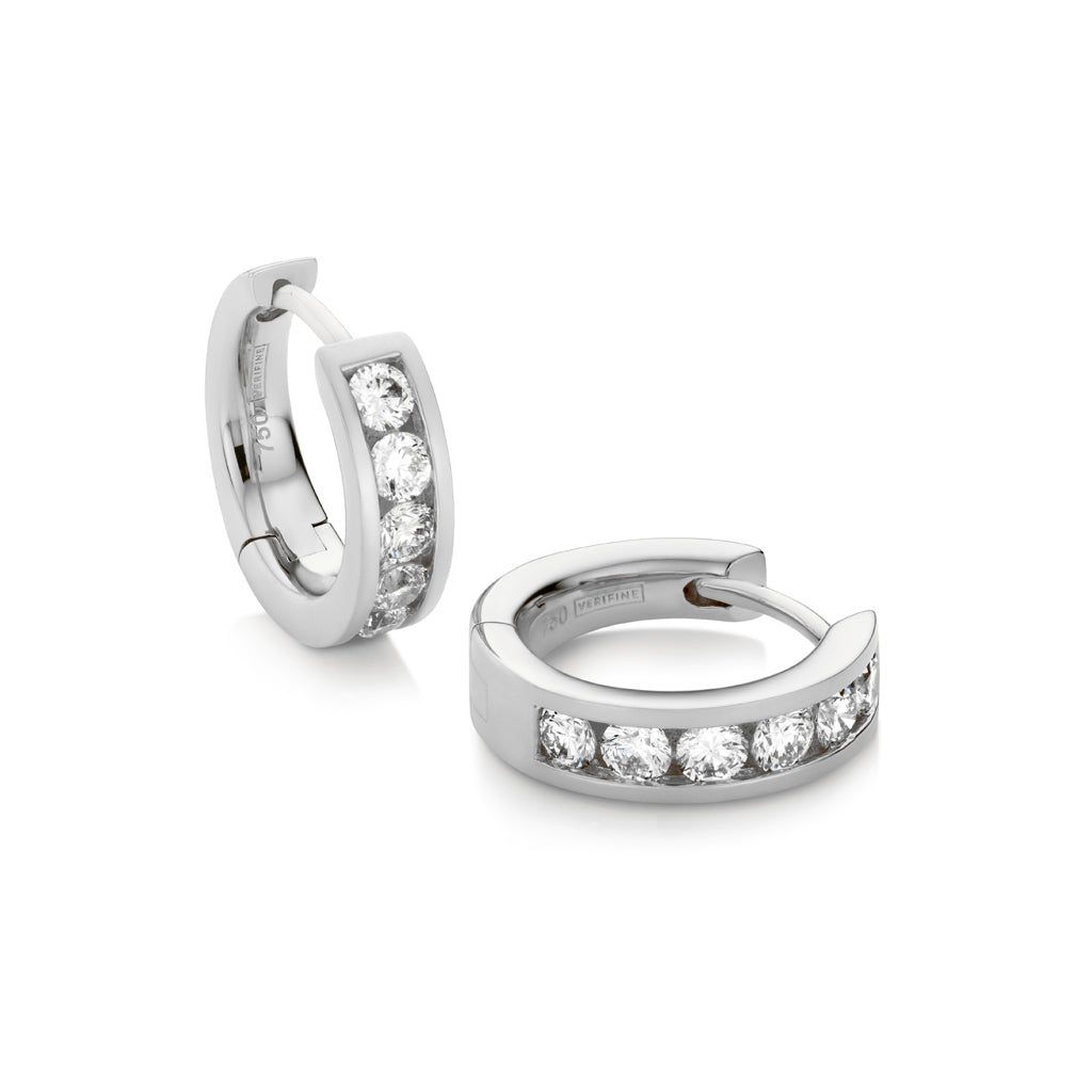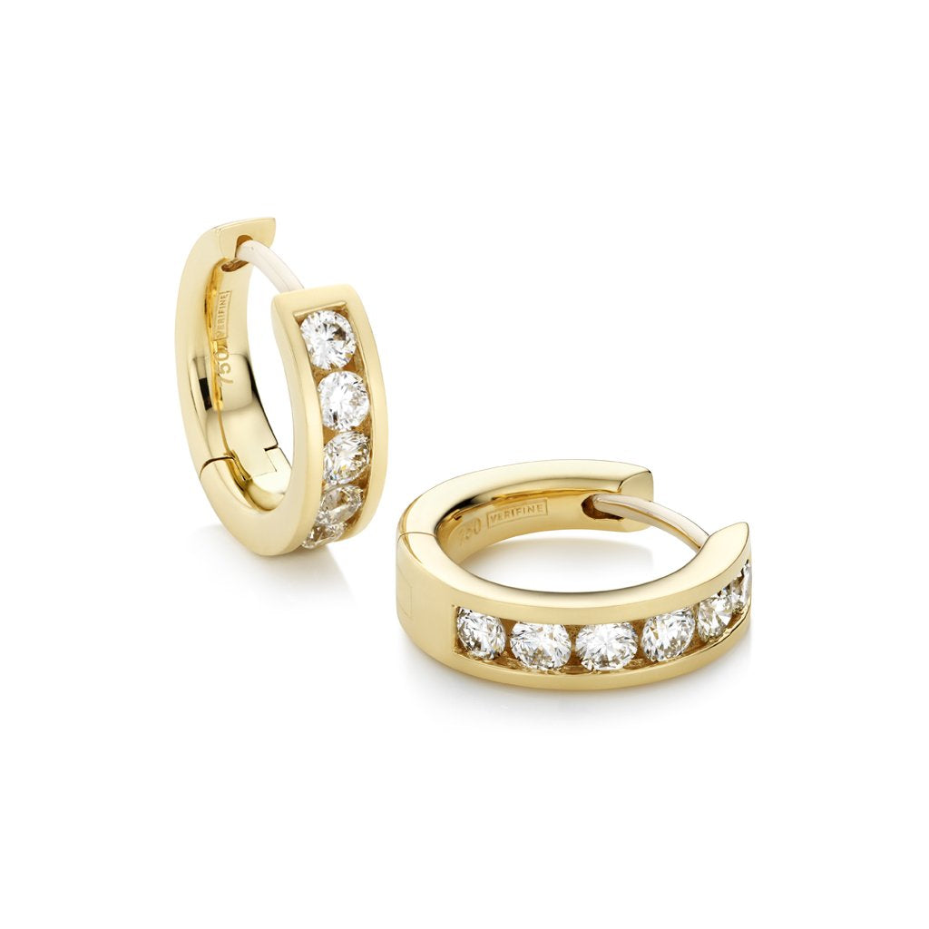 Wide mini-hoop diamond earrings available in 18ct white/yellow gold.