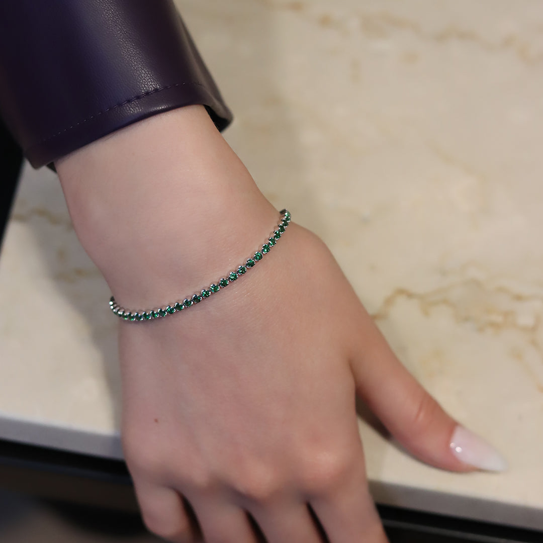 3.0ct Green Garnet White Gold Tennis Bracelet