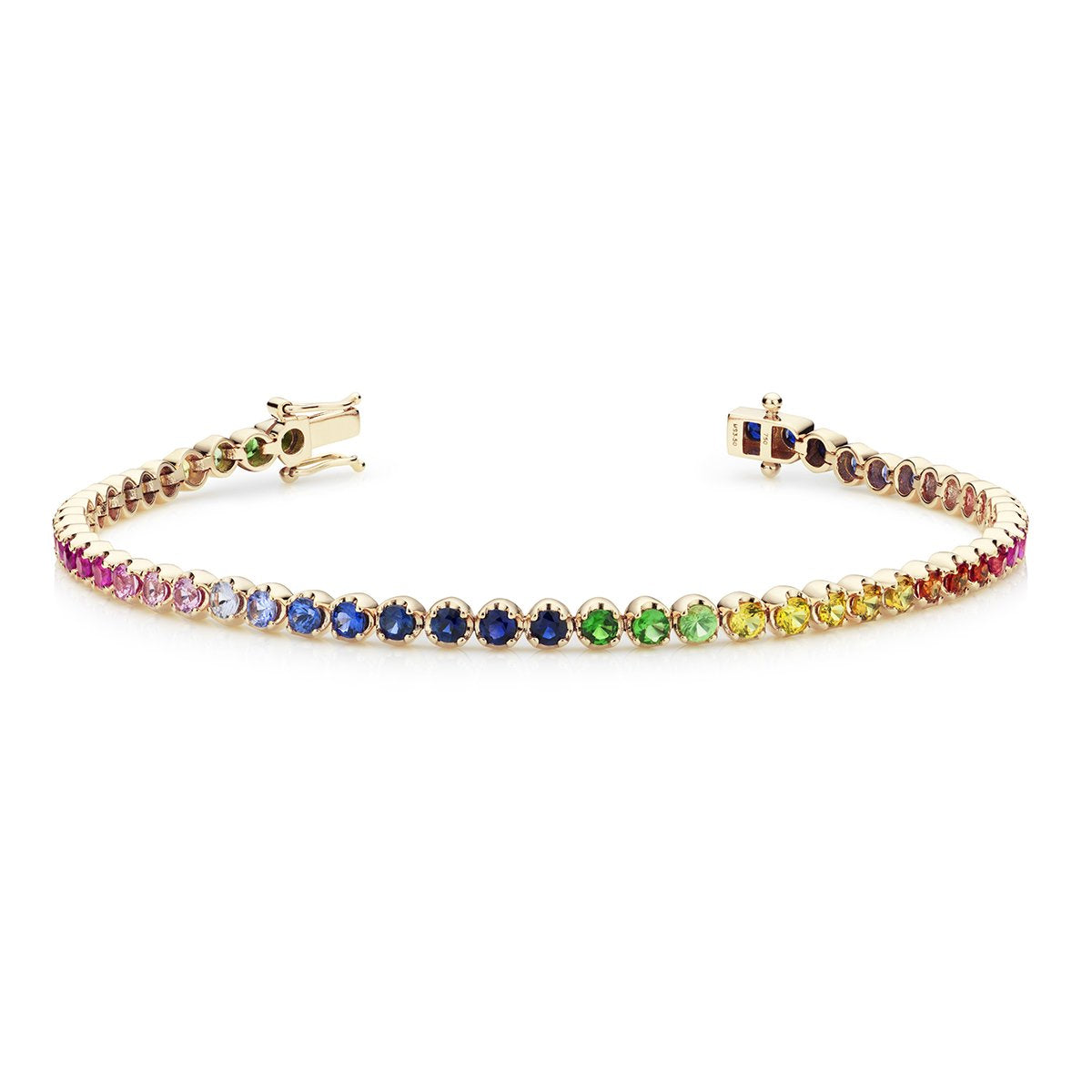 3.0ct Rainbow Sapphire Gold Tennis Bracelet