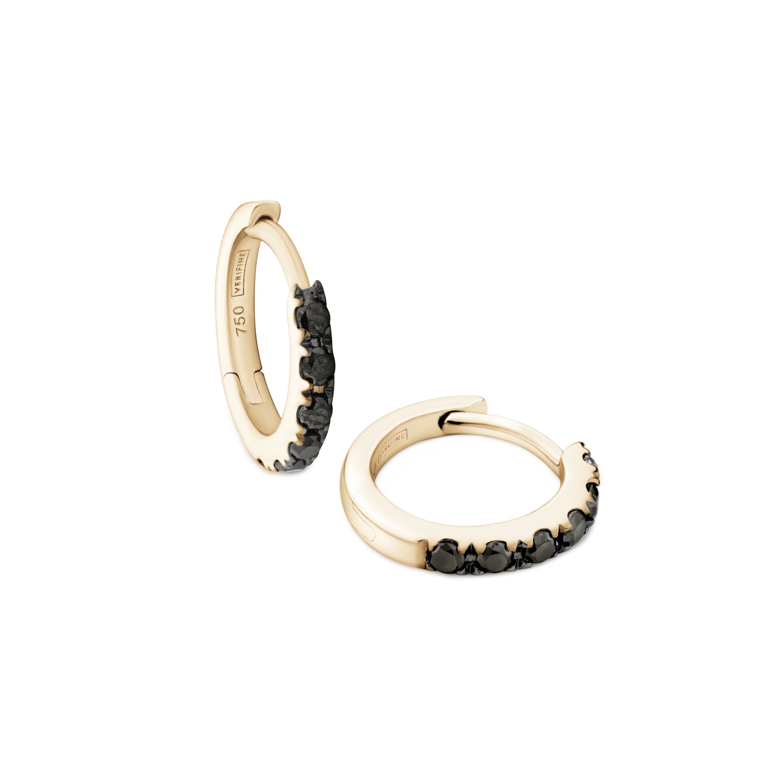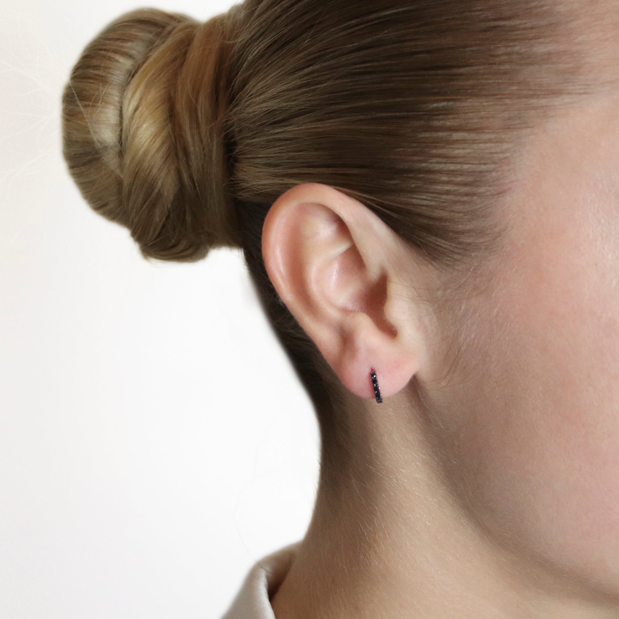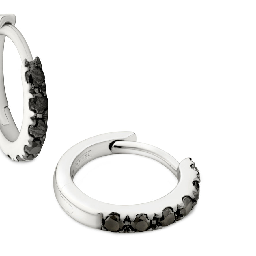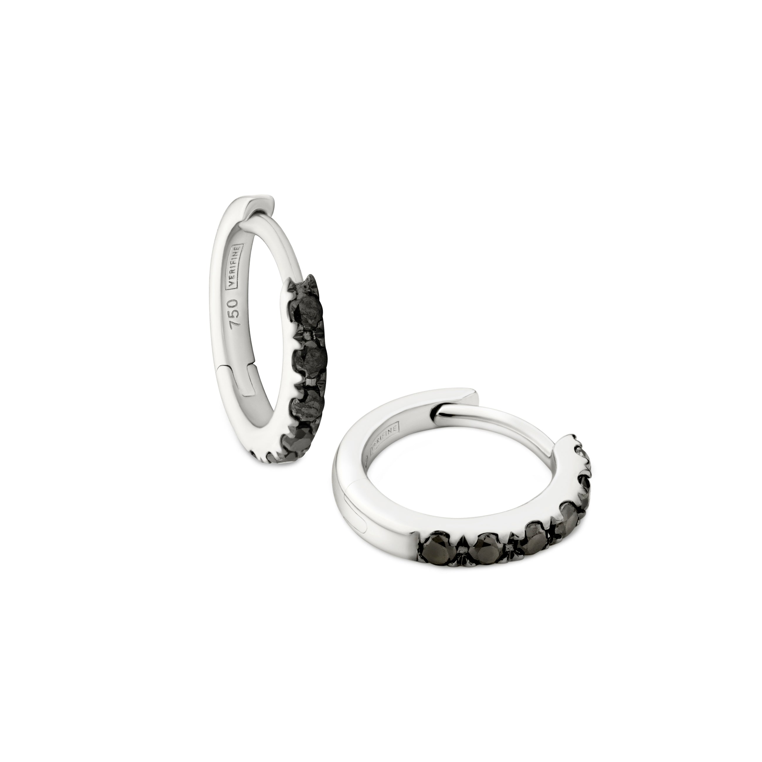 Mini-Creolen aus 18 Karat Weißgold, zur Hälfte mit schwarzen Diamanten besetzt.