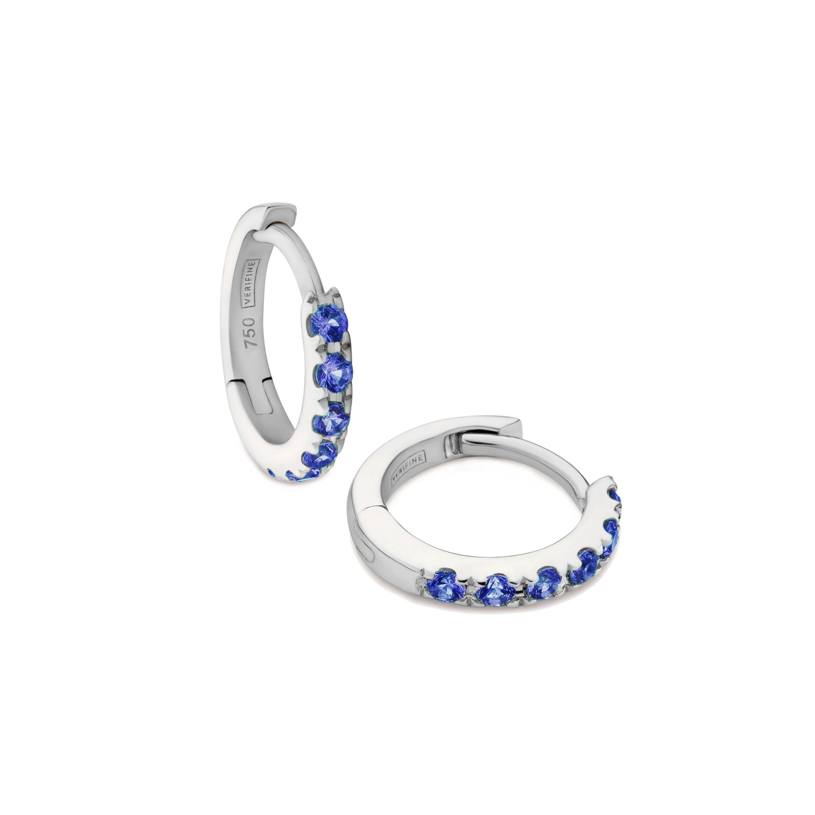 Mini-Creolen aus 18 Karat Weißgold, zur Hälfte mit rosenfarbenen Saphir besetzt.