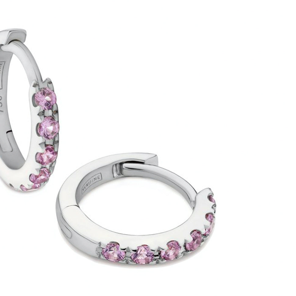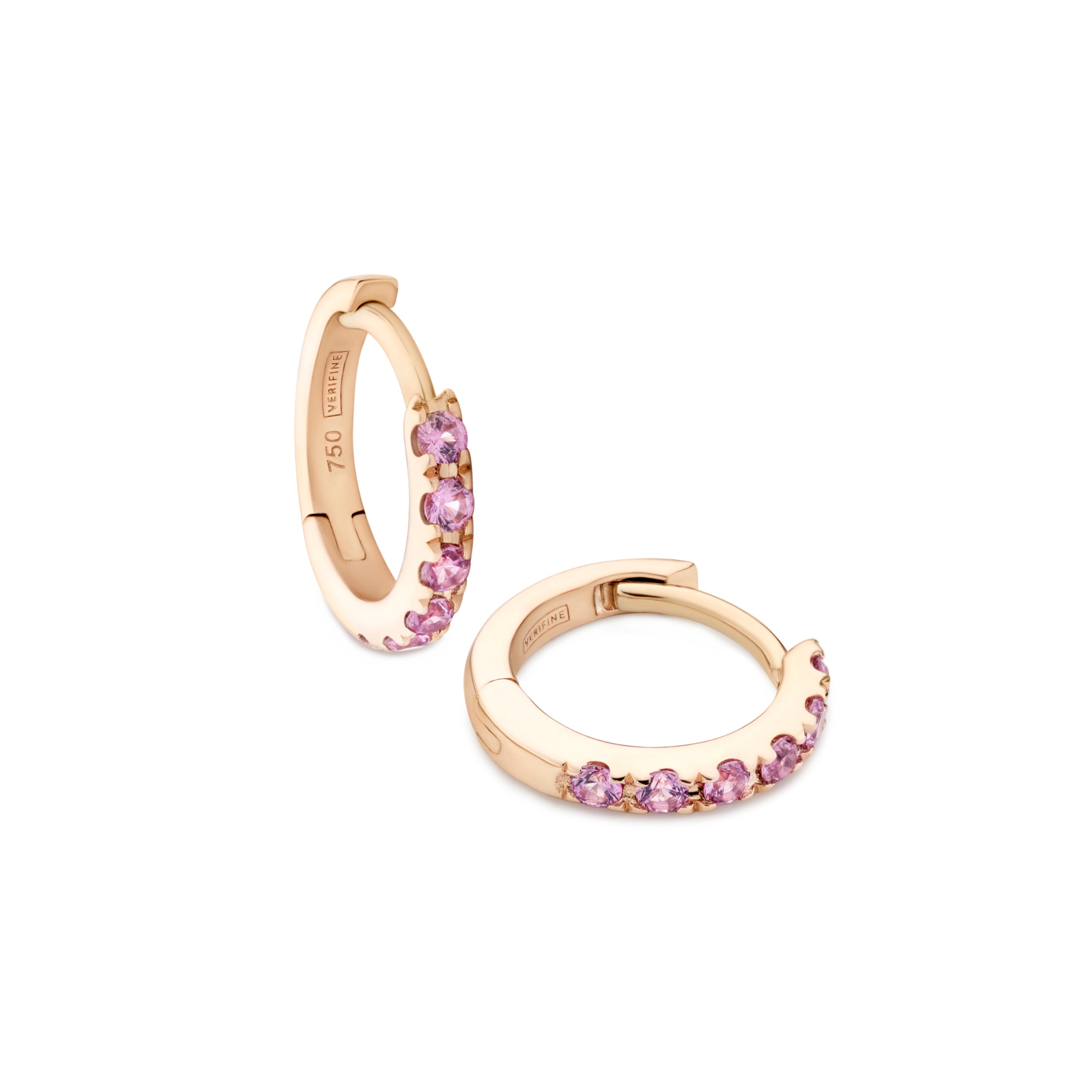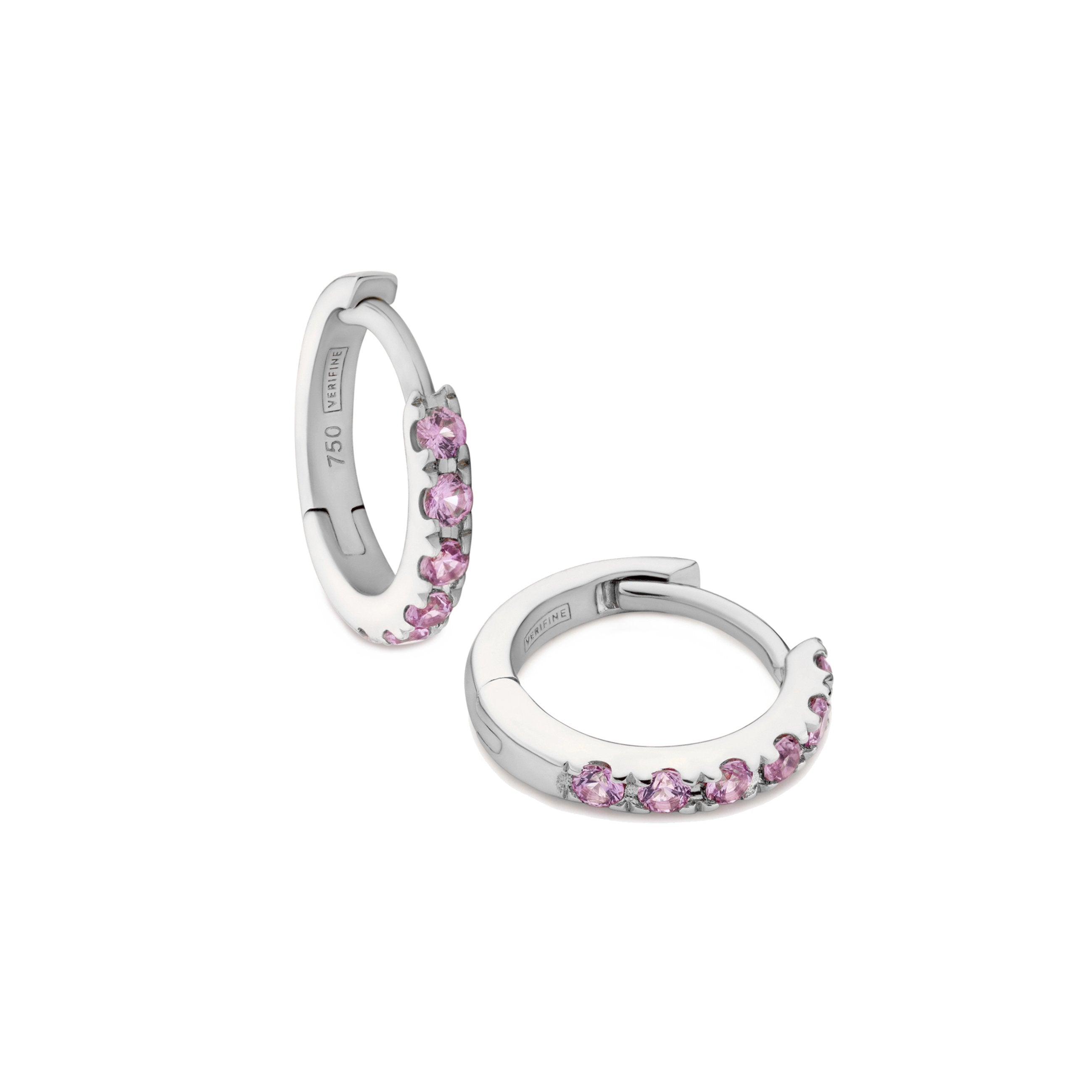 Mini-Creolen aus 18 Karat Weißgold, zur Hälfte mit rosenfarbenen Saphir besetzt.