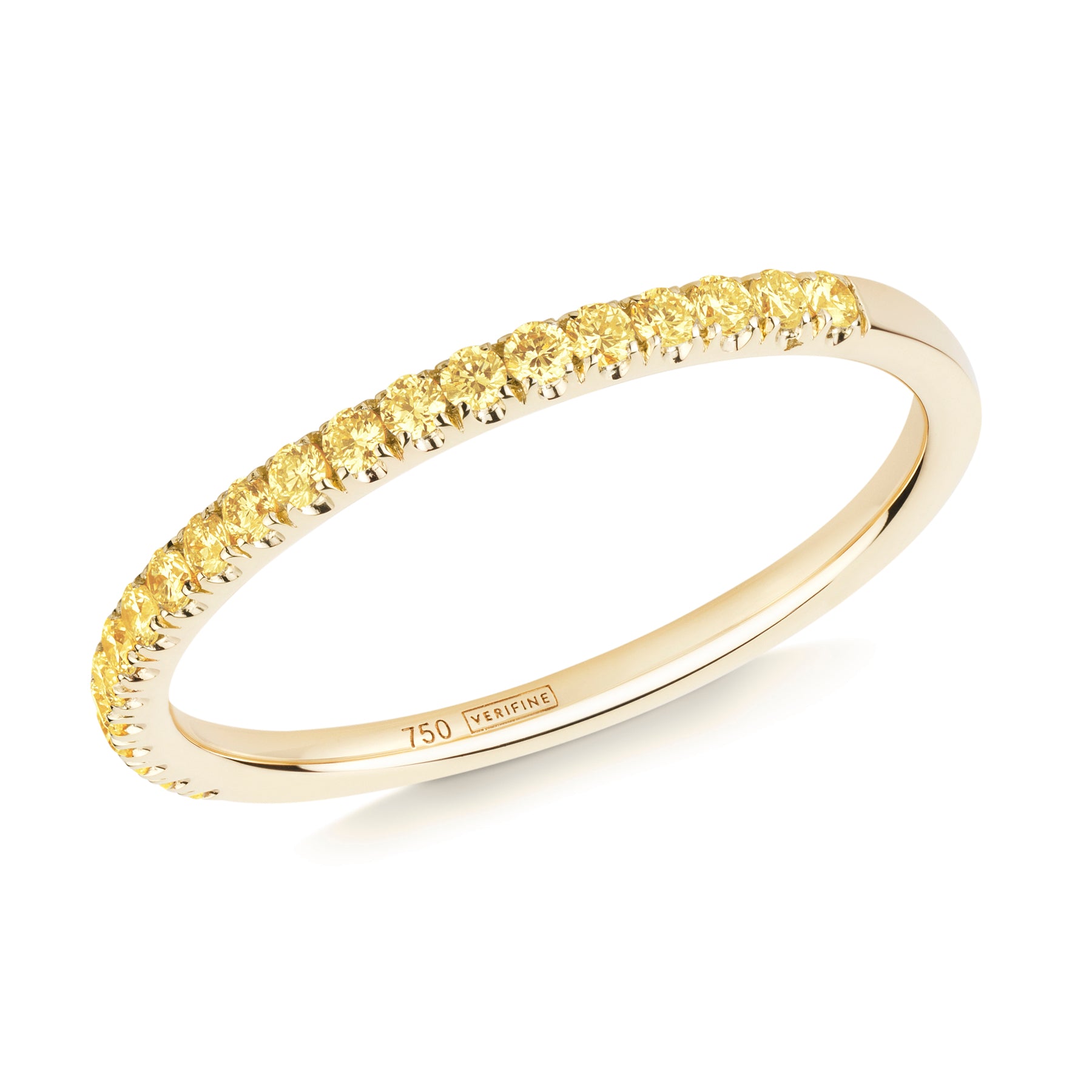 There are 21 round full-cut yellow, individually micro-set into this skinny half eternity ring in 18 carat white gold, weighing a total of 0.23 ct.