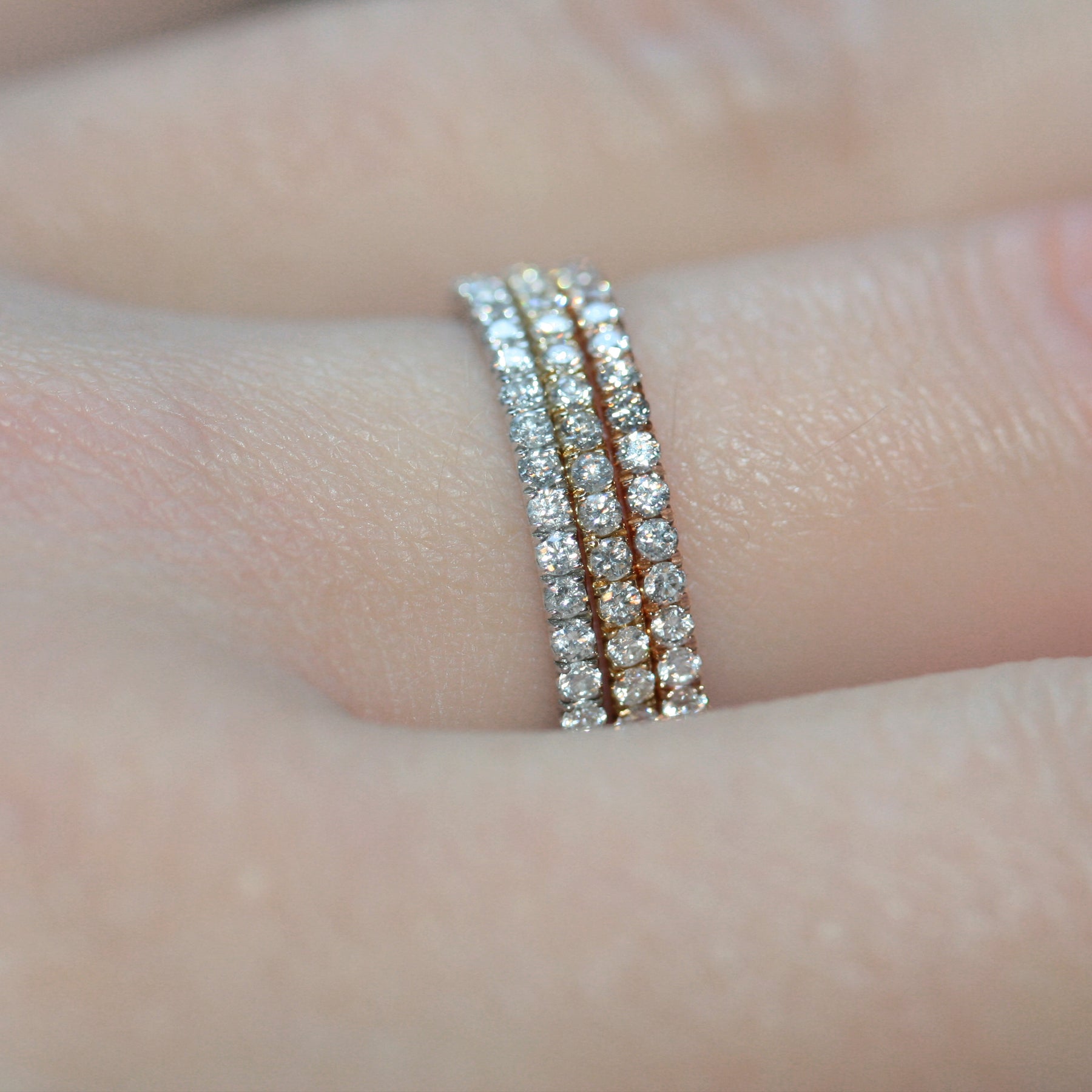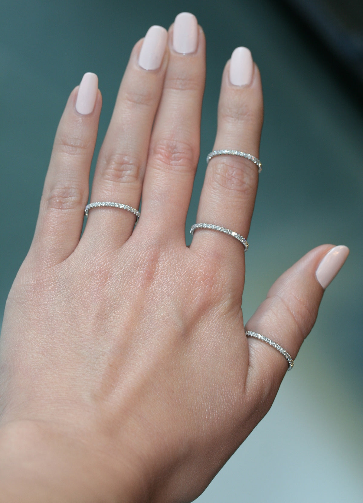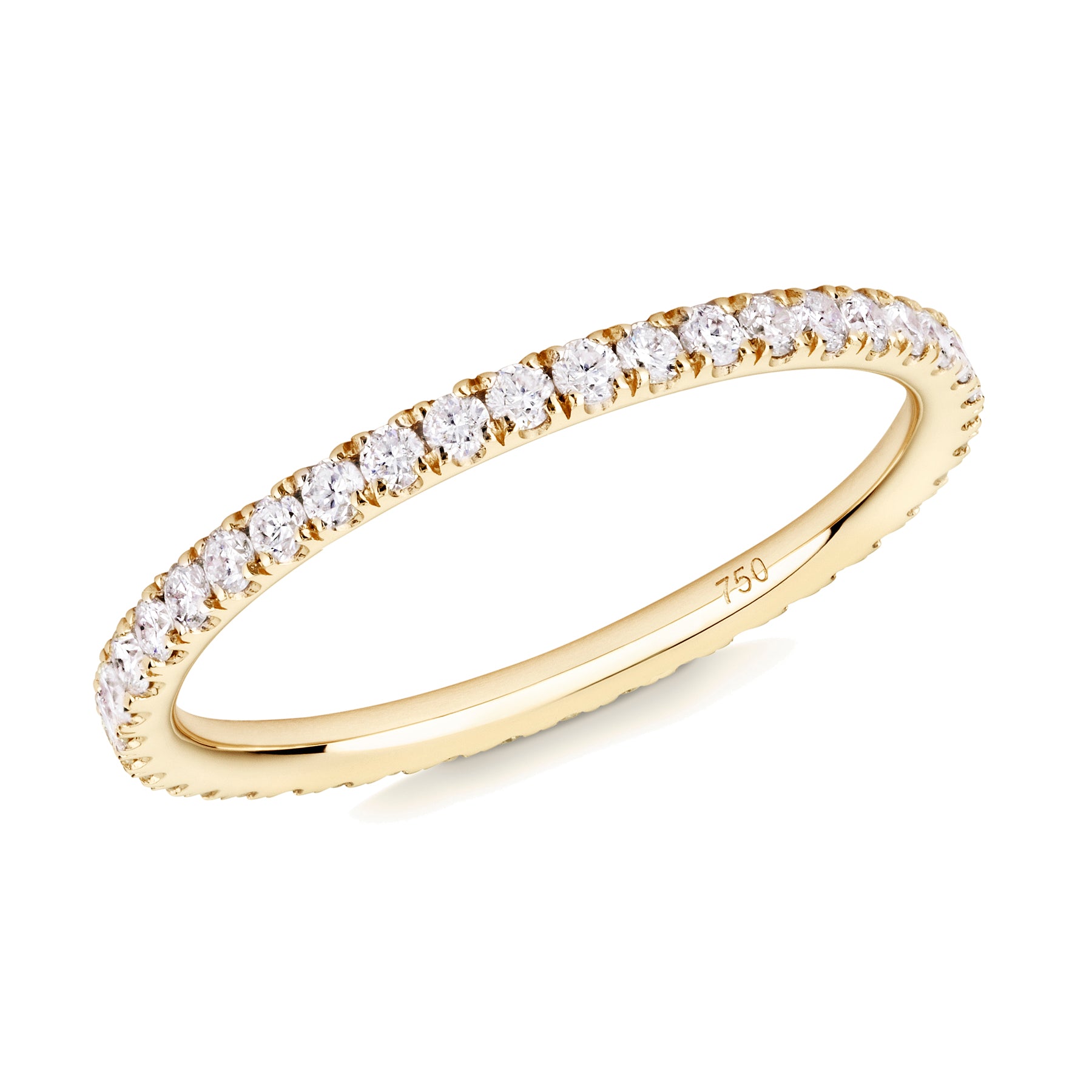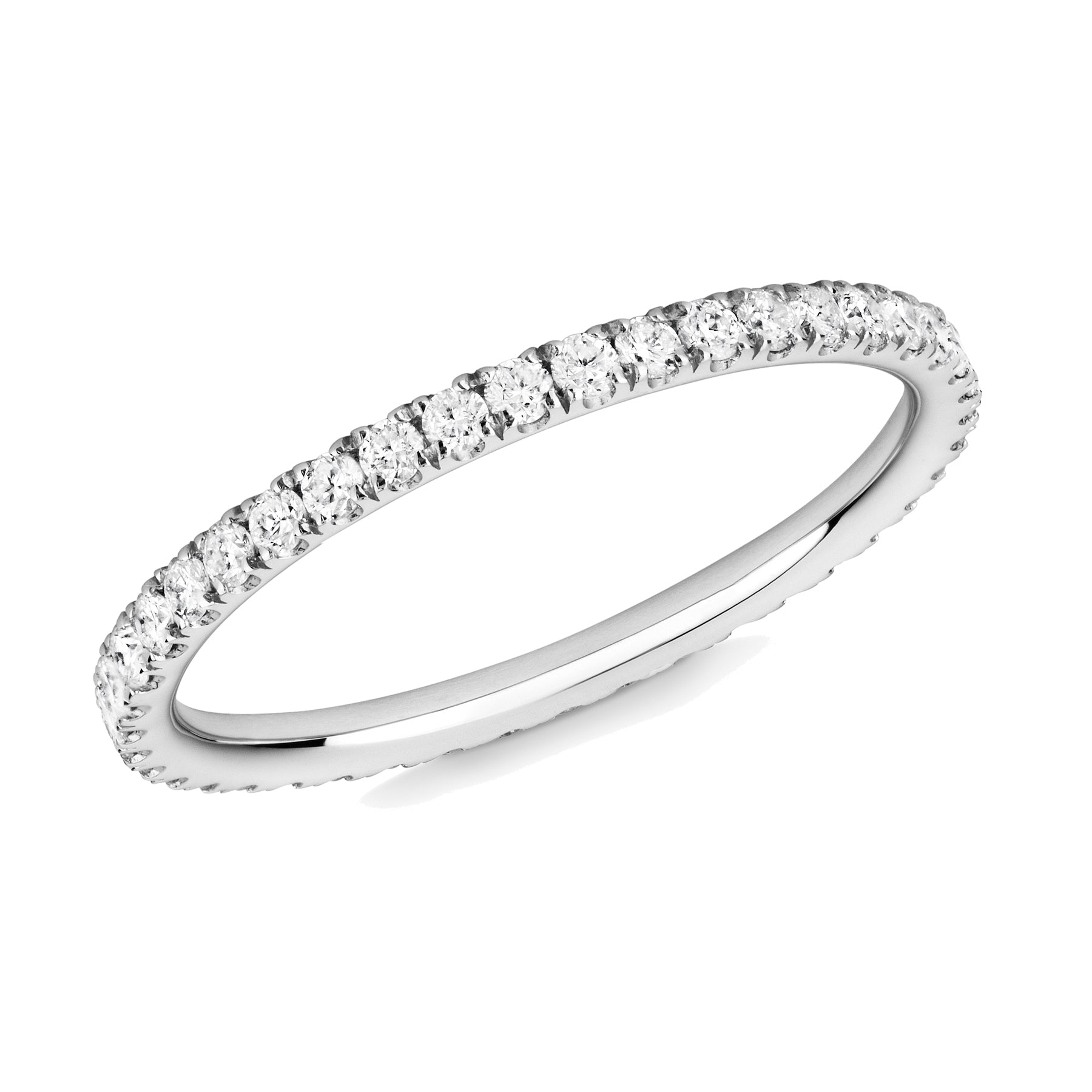 Unser Vorsteckring aus Platin ist mit mindestens 40 Diamanten mit rundem Brillantschliff in Mikroeinfassung besetzt, von denen jeder 1 Punkt wiegt. Unsere Diamanten sind konfliktfrei, mit Farbe G/H und Reinheitsgrad Si. Das Gesamtgewicht der Diamanten variiert je nach Fingergröße, beträgt aber mindestens 0,44 Karat. Durch seine Breite von nur 1,5 mm sieht dieser Ring wunderschön sowohl solo als auch in Kombination mit anderen Vorsteckringen von Verifine aus.