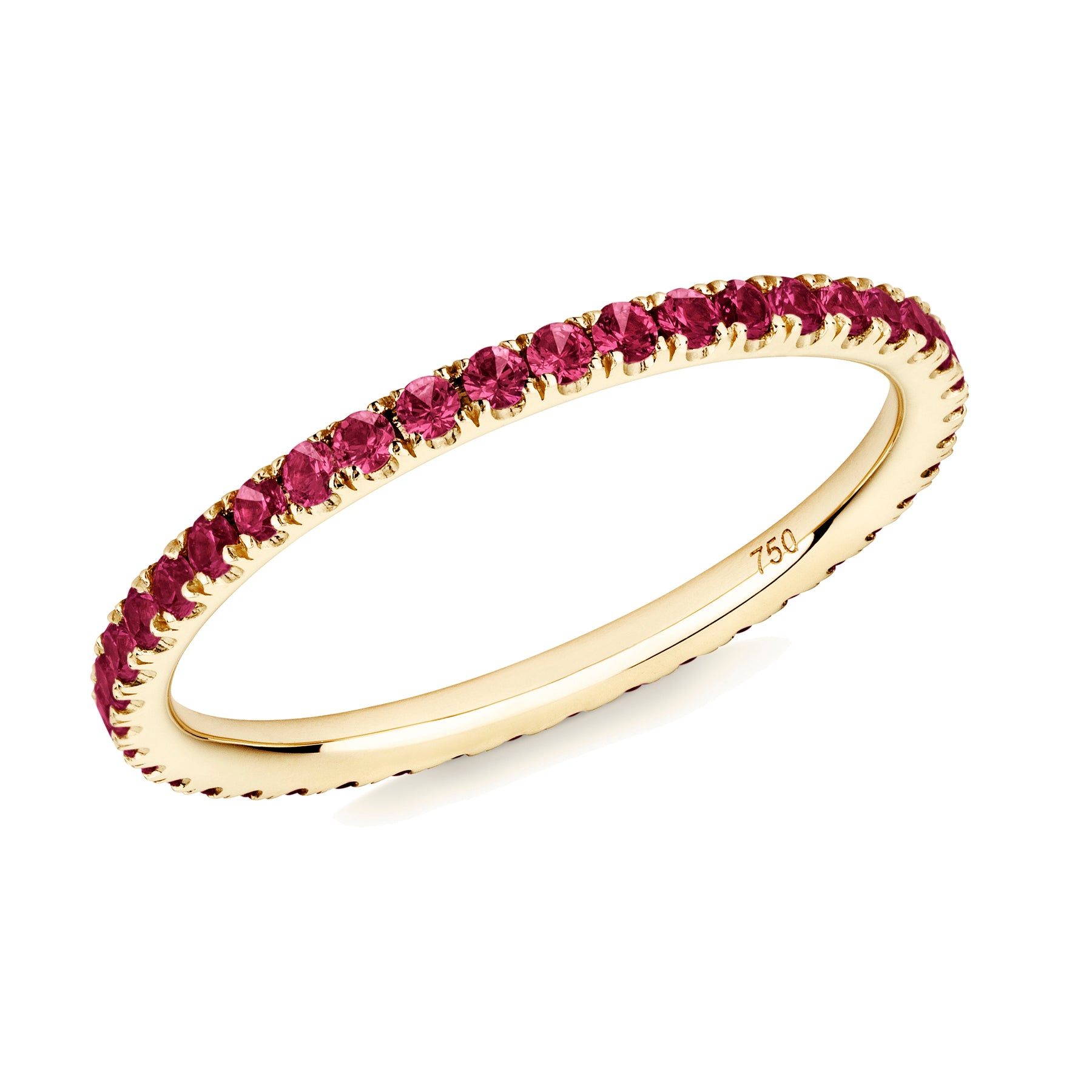 Vorsteckring mit durchgehendem Besatz mit rosafarben Saphiren, 18 Karat Gelbgold