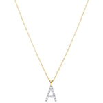 Most letters of the alphabet set with natural diamonds  in 9 carat gold, suspended on a 9 carat gold chain. Wear the initial that means most to you, or wear 2 or 3 on the same chain.