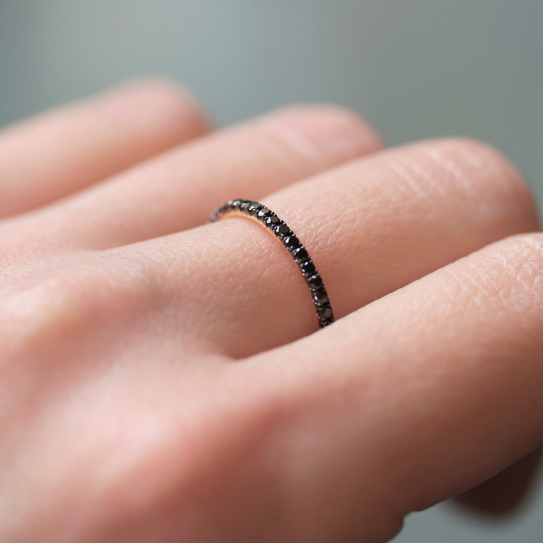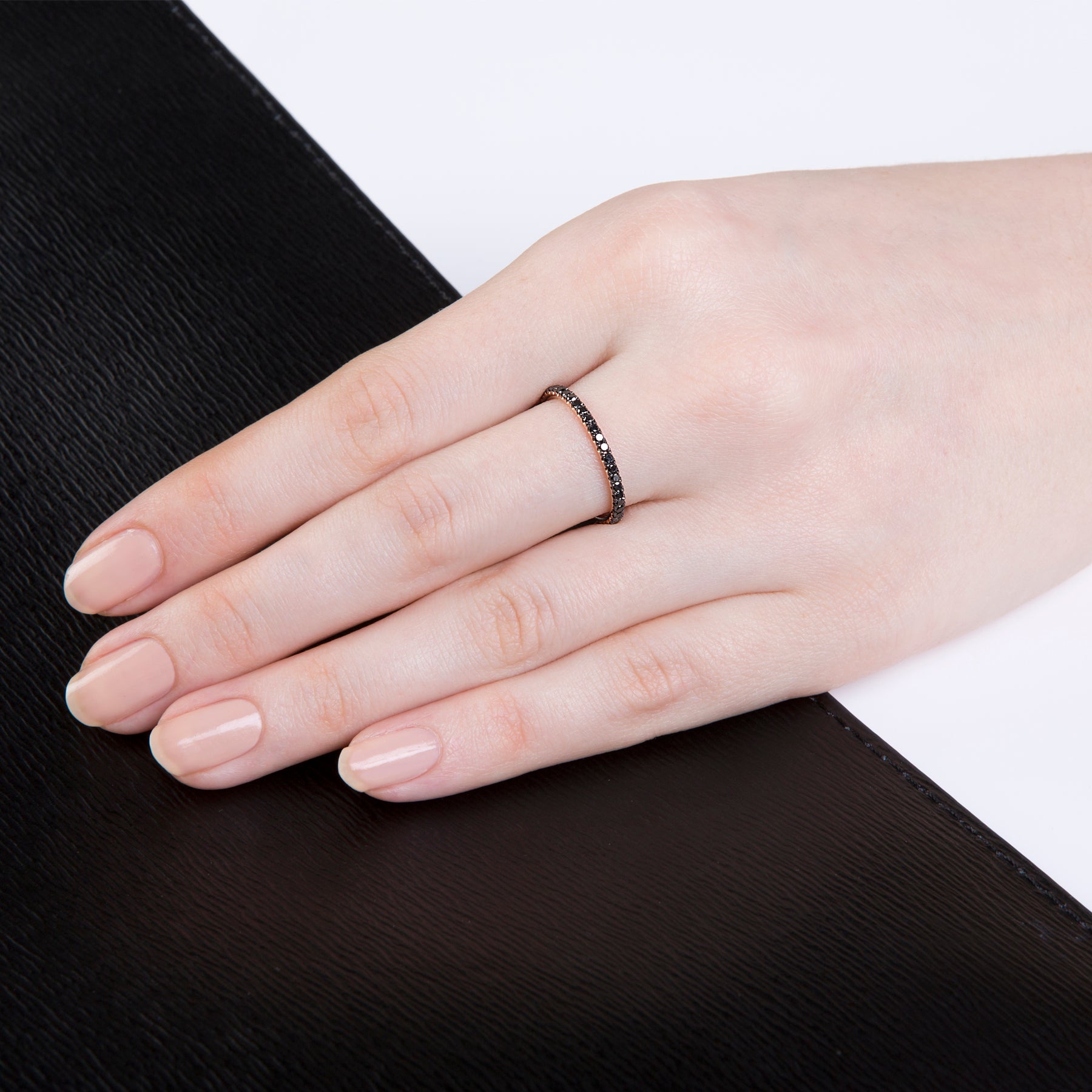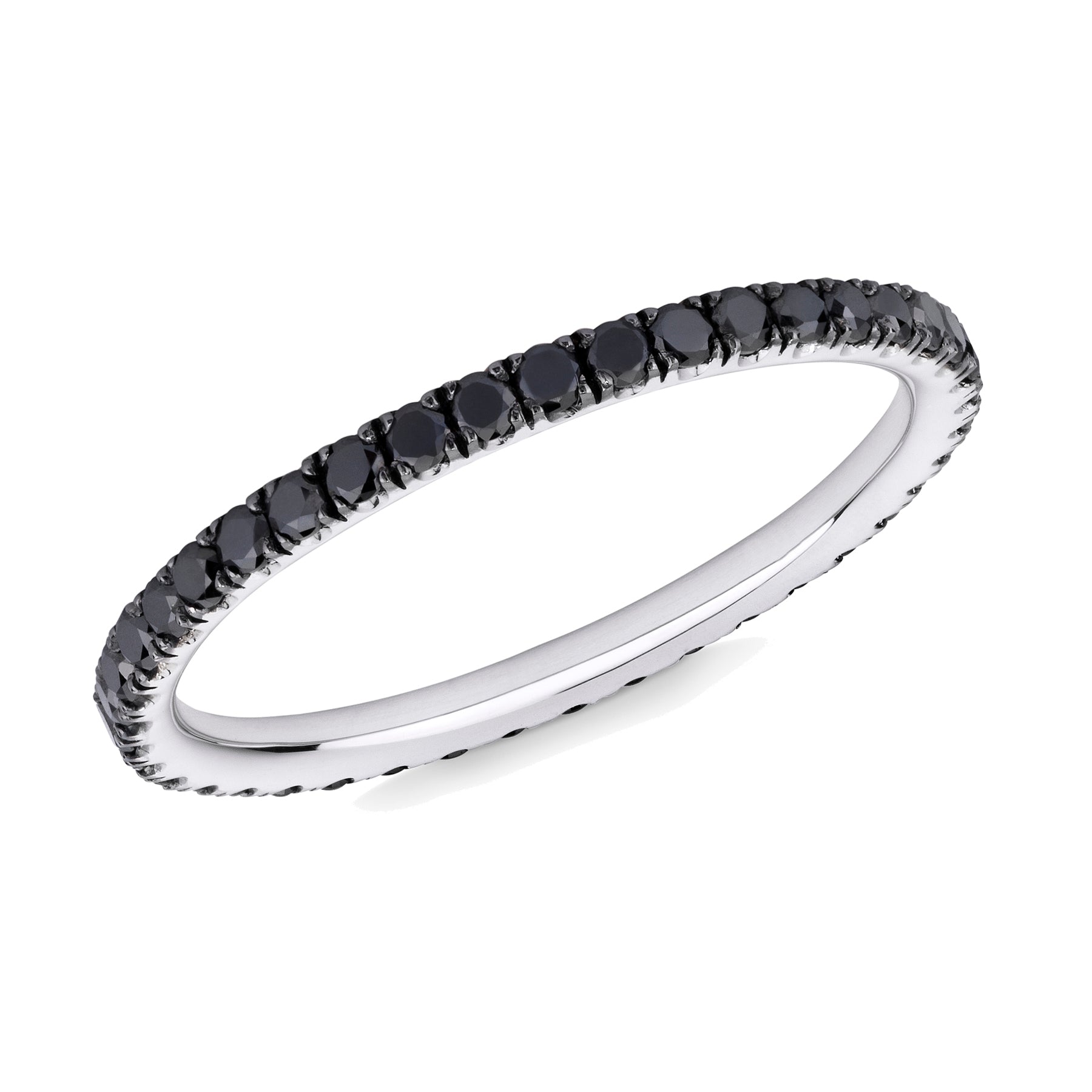 Cette séduisante et mystérieuse bague d’éternité fine en diamant noir convient à toutes les occasions. Elle est très belle portée seule ou associée à d’autres bagues d’éternité fines Verifine.