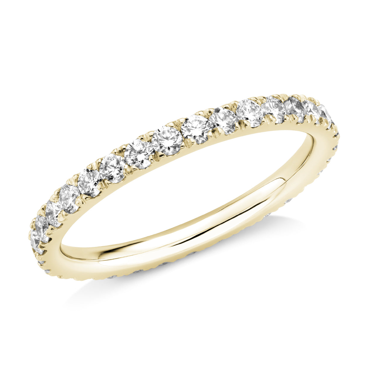 Notre bague d’éternité originale en or blanc 18 carats est micro sertie d’au moins 40 diamants ronds et brillants de pleine taille, pesant chacun 1 point. Nos diamants sont de couleur G ou H, de pureté SI, et ne sont en aucun cas de diamants de conflits. Le poids total du diamant varie en fonction de la taille du doigt mais est d’au moins 0,44 carat. Elle est très belle portée seule ou associée à d’autres bagues d’éternité fines Verifine.
