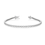 Classic tennis bracelet with round cut diamonds set in prong setting. This beautiful bracelet features a push clasp and double safety locks, It is available in 18ct white, yellow or rose gold and platinum.