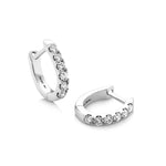 A pair of elegant 18ct white / yellow gold hoop earrings hinged with a bar for piercings, Diamond-set forward facing half of the hoop. These handcrafted earrings are created to match our rings.