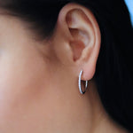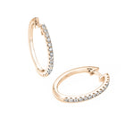 A pair of elegant oval hoop earrings cast from 18 carat white / yellow gold, featuring a pierced closure and diamond embellished forward facing half of the hoop. These handcrafted earrings are created to match our rings. Their timeless design makes them the perfect everyday signature.